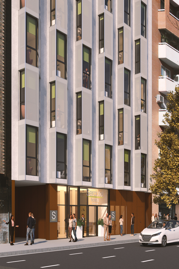 Ejecución de un edificio de nueva planta destinado a uso hotelero en la calle Jesús de Valencia, implantado en un entorno urbano consolidado entre medianeras.