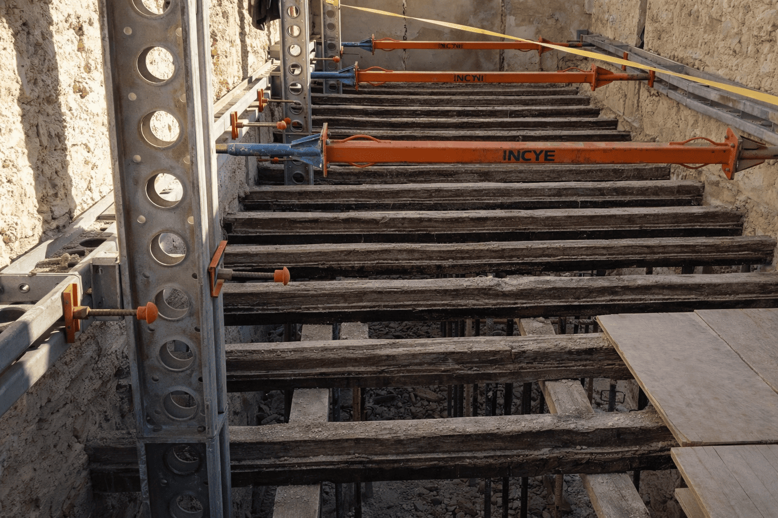 El proyecto aborda la consolidación de muros, pilares y arcos ejecutados principalmente con fábricas tradicionales de tapia de cal y sillería de piedra, que presentaban grietas, desplomes y degradaciones significativas. Las actuaciones se orientan a estabilizar la estructura, frenar el deterioro de los elementos originales y garantizar la seguridad y durabilidad del conjunto edificatorio.